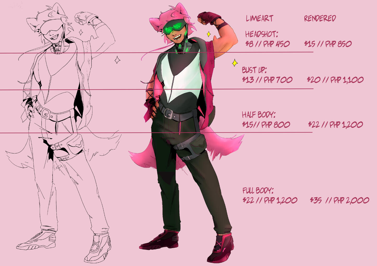 Note: These are only the baseprices. it may differ due to complications such as dynamic pose, lightings or other factors (to be negotiated)Possible Additional Charges: